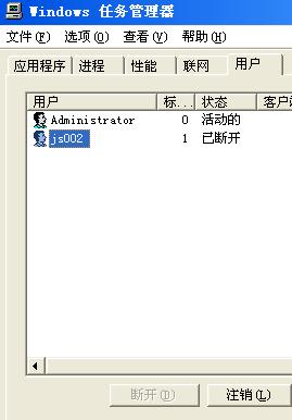 弹出如1-2界面,选择用户选项卡,在该选项卡里面会出现该用户,一般显示的状态是断开的,点击下面的注销把该用户注销掉即可。