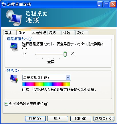 在远程连接中,有时远程界面只显示一个小界面