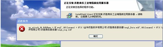 在安装济胜商务时,出现了以下错误,并且安装结束后,发现数据库没有附加,为何?